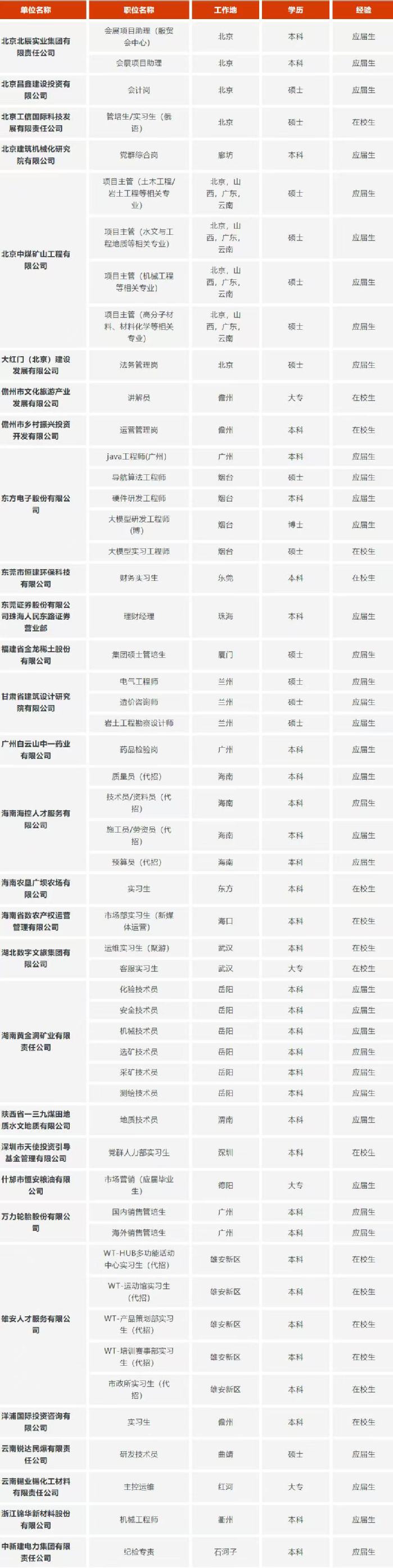 央国企招聘信息汇总——地方国企校招