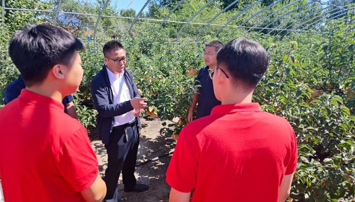 座谈后,师生们实地参观了永胜村的核心产业项目——果蔬大棚示范基地。大棚内番茄、香瓜等作物长势喜人,村民正忙碌采摘。孙殿祥现场解说:“这些大棚由村集体投入28万元建成,年利润2万元,吸纳了10名村民稳定就业。我们还在闲置期轮作蒲公英等作物,探索‘党建+庭院经济’模式,帮助村民拓宽增收渠道。”学生们亲身参与番茄采摘,聆听村民讲述“家门口就业”的故事,深刻体会到产业振兴的活力。学生感慨:“大棚不仅是经济引擎,更是村民的‘致富棚’。我学到了党建引领如何转化为实实在在的民生福祉。”