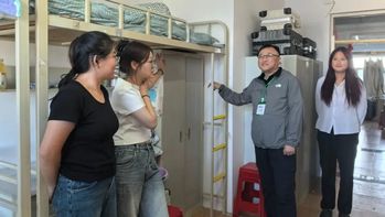 为全面了解2025级新生入学后的思想动态与生活适应状况,切实体现学院对新生的关怀,9月6日晚,学院领导班子分组带领辅导员和班主任深入新生宿舍,开展查寝慰问活动。