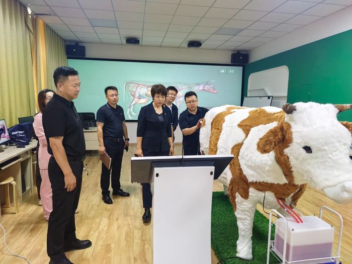 动物科技学院展示了依托“头雁”项目开发的“智慧养殖虚拟仿真教学系统”。该系统通过沉浸式体验现代化养殖全流程操作,支持学员在虚拟环境中进行疫病诊断、环境调控等高成本、高风险情景的模拟演练,有效破解了实操教学难题,显著提升了培训的趣味性与实效性,是信息技术赋能实践教学的一次成功探索。