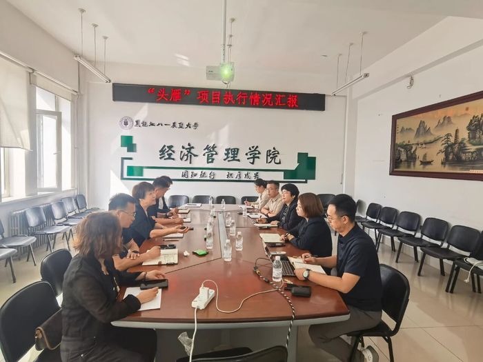 检查组通过听取汇报、现场演示和座谈交流等方式,深入了解了各子项目的进展与成效。在经济管理学院,检查组听取了依托“头雁”项目建设的“‘头雁’培育数据库与‘四雁’项目”汇报。该数据库不仅实现了对学员基础数据、产业动态与帮扶需求的全周期管理,还创新性地将区域经济资源进行数字化整合与智能匹配,为构建层次分明、协同高效的乡村人才振兴生态系统提供了坚实的数据支撑和决策依据。“讲雁乡、说雁品、诉雁情、传雁魂”“四雁”项目,以“叙事+产业+情感+精神”为逻辑主线,通过生动讲述雁乡故事、阐释雁品内涵、彰显为农情怀、弘扬奋斗精神,全方位赋能乡村振兴人才培养与文化建设。