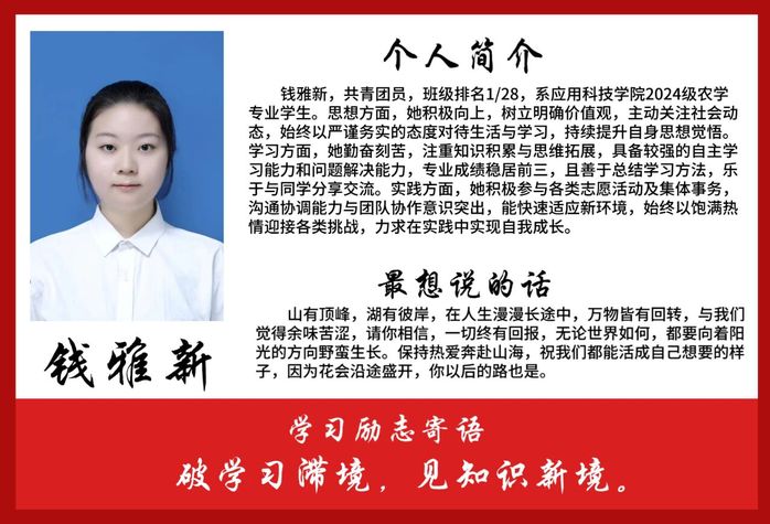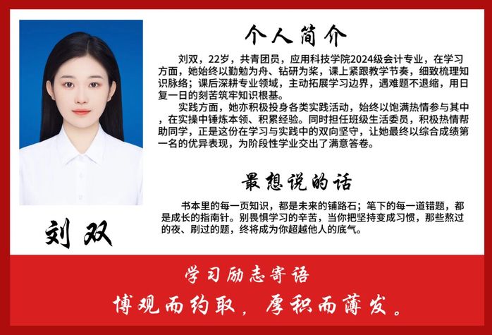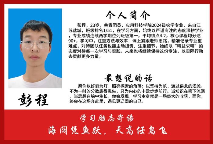 他们自信乐观、严于律己,在知识的海洋中刻苦钻研、敢于担当,用优异的表现诠释着青春的奋斗底色。从他们身上,我们看到了对学习的热忱、对自我的超越。