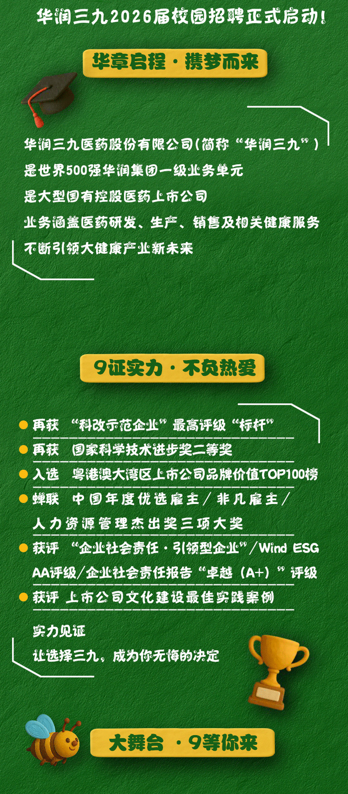 招聘信息 | 华润三九2026届秋季校园招聘正式启动