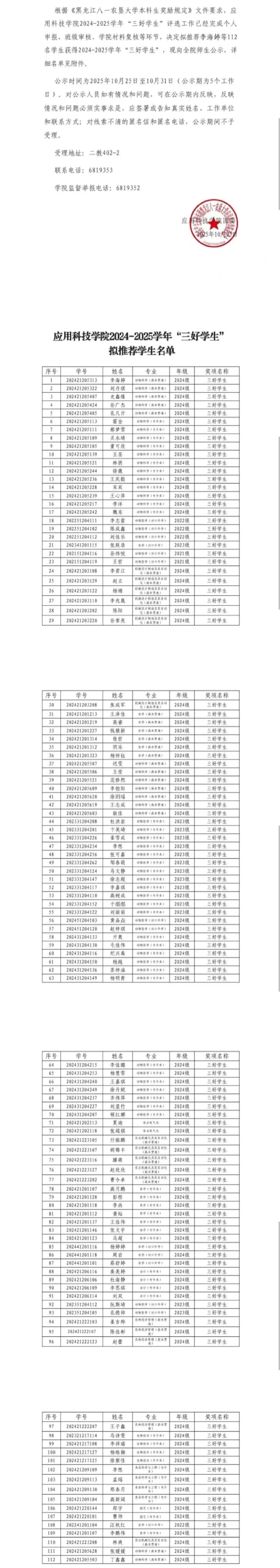 9999js金沙老品牌2024-2025学年“三好学生‘’拟推荐学生名单公示