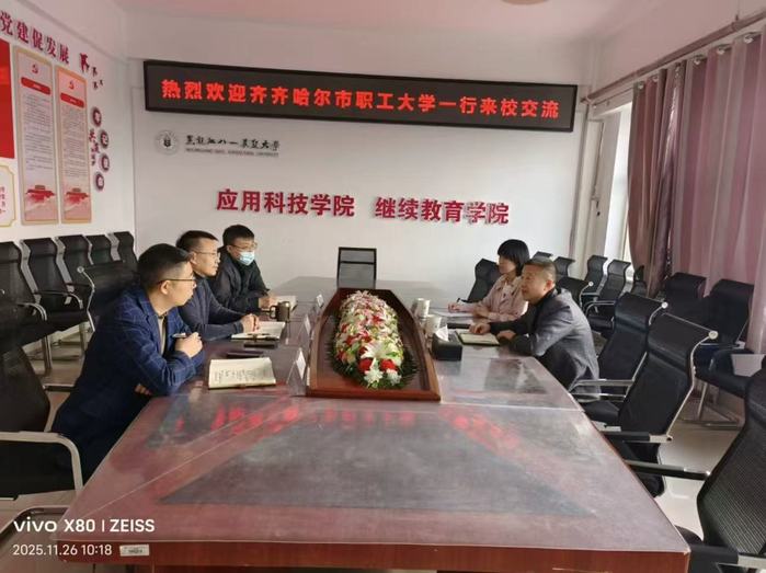 会上,尚英奇介绍了齐齐哈尔市职工大学2025年招生工作情况,围绕市场需求和学校特色,学校依托齐齐哈尔市总工会“求学圆梦”学历教育支持政策,大力开展招生宣传工作,截止目前预报名总人数120人。学院院长宫占元对尚英奇主任一行的到来表示热烈的欢迎,对齐齐哈尔市职工大学首年在招生工作上付出的辛苦和努力给予充分肯定。他介绍了八一农大学历继续教育招生工作整体情况,围绕双方在联合办学方面的重点和难点做了细致的交流,并表示将全力推动齐齐哈尔市职工大学校外教学点建设,促进双方在学历教育乃至非学历教育培训中互促共赢。
