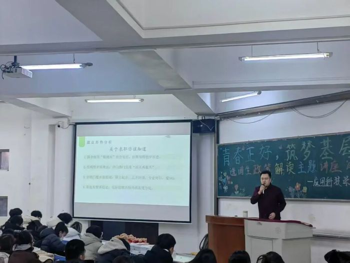 为引导学生树立扎根基层、服务社会的职业价值观,增进学生对国家基层就业政策的了解,12月4日下午,学院在二教214教室成功举办了“青春正好 筑梦基层”选调生政策解读主题讲座。本次讲座由学院就业辅导员杨琪与2016届食品科学与工程专业校友郭道博共同主讲,约150名同学到场参与。