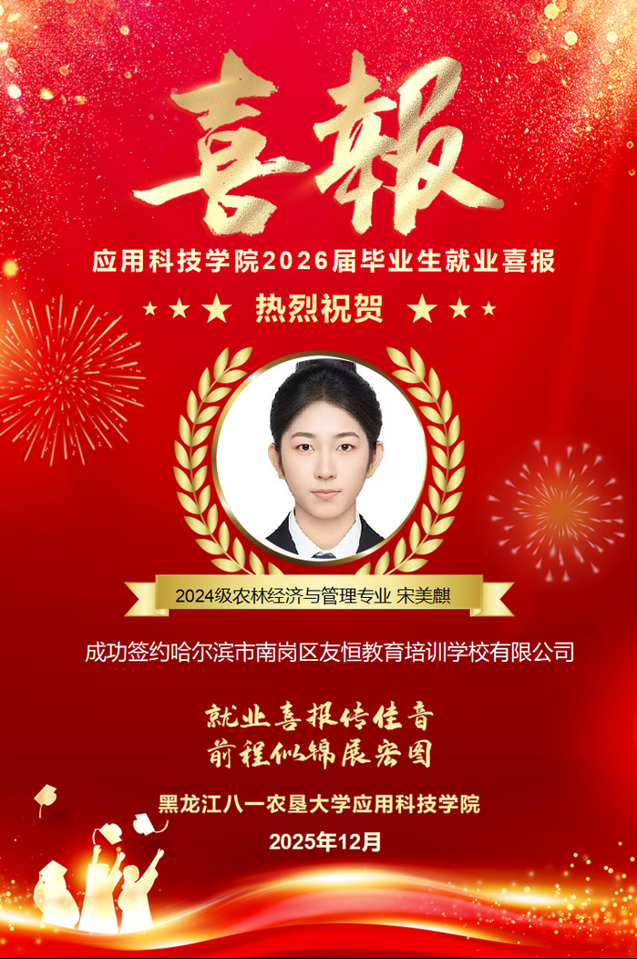 热烈祝贺学院宋美麒同学成功就业!