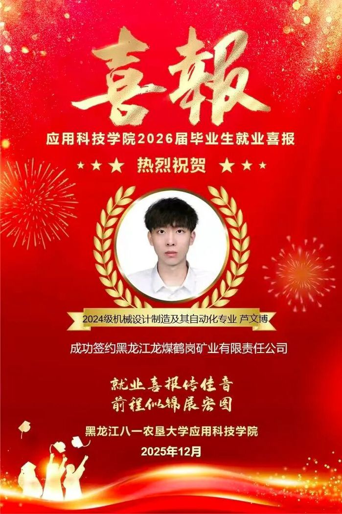 热烈祝贺学院芦文博同学成功就业!