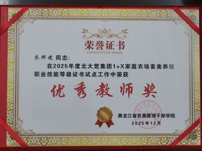 近日,学校在2025年度北大荒集团“1+X”职业技能等级证书试点工作总结表彰中,荣获“优秀院校奖”和“优秀组织奖”。经济管理学院张慧琴老师和信息与电气工程学院齐邦建老师荣获“优秀教师奖”。